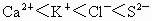 有三个电子层,为第三周期,第三周期元素的单质能形成双原子分子的只有氯元素,所以 B为Cl;C的核外电子比A少一个,应是K;D与B同周期,单质为淡黄色,应为S.此题易出现的错误是: (1) 将离子符号写成元素符号;(2) 将离子半径大小顺序写反;(3) 书写电子式不规范. |