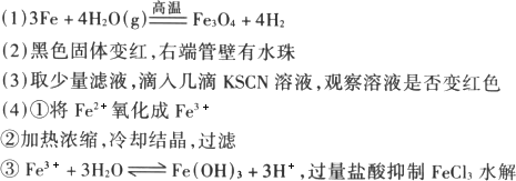 某校化学小组学生利用下图所列装置进行“铁与水反应”的实验,并利用产物进一步制取FeCl3·6H2O晶体.(图中夹持及尾气处理装置均已略去)
