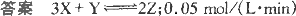 某温度时,在2 L容器中X、Y、Z三种物质的物质的量随时间的变化曲线如下图所示.由图中数据分析,该反应的化学方程式为________;反应开始至2 min,Z的平均反应速率为________.