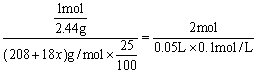 取2.44g BaCl2×xH2O溶于水,配成100 mL溶液,量取此溶液25.00 mL,恰好和50.0mL 0.10moL/L AgNO3溶液完全反应。通过计算确定化学式。