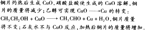 将等质量的铜片在酒精灯上加热后,分别插入下列溶液中,放置片刻后,使铜片质量增加的是 | |