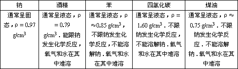 酒精、苯、四氯化碳、煤油等与金属钠的物理性质如下表.