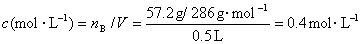 称取Na2CO3·10H2O晶体57.2 g,配成500 mL溶液,求此溶液的物质的量浓度。