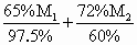 近年来,工业上用Mg(NO3)2替代浓硫酸作为制取浓硝酸的脱水剂.65%的HNO3(质量为M1)中加入72%Mg(NO3)2(质量为M2)后蒸馏,分别得到97.5%的硝酸和60%的Mg(NO3)2溶液(不含HNO3)(题中数据均为质量百分比浓度).