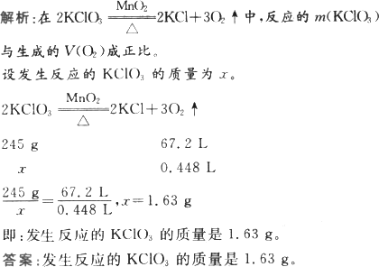 实验室中加热KClO3和MnO2的混合物制取O2,若要收集448 mL(STP)O2,发生反应的KClO3的质量是多少?