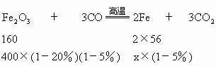 用400t含杂质20%的赤铁矿炼铁.若在冶炼过程中有5%的铁损失了,求可得含碳5%的生铁多少吨?