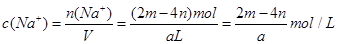 BaCl2和NaCl的混合溶液aL,将其分为两等份。一份滴加5%的硫酸,使Ba2+完全沉淀;另一份滴加AgNO3溶液,使Cl-完全沉淀。反应中消耗 n mol H2SO4, m mol AgNO3,据此得知原混合溶液中的c(Na+)(mol·L-1)为