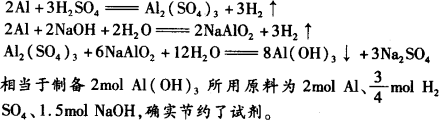 ¡¡¡¡½âÎö£º(1)Al¼È¿É¸úÏ¡H2SO4£¬Ò²¿É¸úNaOHÈÜÒº·´Ó¦£¬AlÈܽⲢ·Å³öH2£®ÈܽâºóÈç¹ûÔÙÒÔNaOHÈÜÒº»òH2SO4´¦Àí£¬Êµ¼ÊÉÏÊǵ÷¿ØpH£¬Ê¹Ö®µÃµ½Al(OH)3£¬´ïµ½ÖƱ¸µÄÄ¿µÄ£®ÏÈÓÃËᣬºóÓü»¹ÊÇÏÈÓüºóÓÃËᣬ¶¼ÊÇ¿ÉÐе쬵«ÊǺÄÓõÄËá¡¢¼îÓÃÁ¿È´²»Í¬£®Í¬ÑùÊÇÖÆ±¸2 mol¡¡Al(OH)3£¬Ç°·¨Ðè2 mol¡¡Al¡¢3 mol¡¡H2SO4¡¢6 mol¡¡NaOH£¬ºó·¨Ö»Ðè2 mol¡¡Al¡¢1 mol¡¡H2SO4¡¢2 mol¡¡NaOH£®ÏÔÈ»£¬ºó·¨½Ïǰ·¨½ÚÔ¼ÁËËá¡¢¼îÊÔ¼Á£® ¡¡¡¡(2)×Ðϸ¹Û²ìµÚÒ»ÖÖ·½·¨£¬ËüµÚÒ»²½Éú³ÉµÄÊÇAl2(SO4)3£¬ÂÔÓÐËáÐÔ£¬ËùÒÔÒªÓý϶àµÄNaOH£®µÚ¶þÖÖ·½·¨£¬ÆäµÚÒ»²½Éú³ÉµÄÊÇNaAlO2£¬ÂÔÓмîÐÔ£¬ËùÒÔÒªÓý϶àµÄËáH2SO4£®Òò´Ë£¬ÉèÏëÊÇ·ñÄÜÓÃÂÔÓÐËáÐÔµÄAl2(SO4)3ºÍÂÔÓмîÐÔµÄNaAlO2Ï໥·´Ó¦ÄØ£¿ÁªºÏÁ½·¨¿ÉÒÔÉè¼Æ³öµÚÈýÖÖ·½·¨£® ¡¡¡¡ |