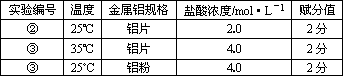 | 1. ʵÑé¢ÙºÍ¢Ú̽¾¿ÑÎËáŨ¶È¶Ô¸Ã·´Ó¦ËÙÂʵÄÓ°Ïì; 2. ʵÑé¢ÙºÍ¢Û̽¾¿Î¶ȶԸ÷´Ó¦ËÙÂʵÄÓ°Ïì; 3. ʵÑé¢ÙºÍ¢Ü̽¾¿½ðÊô¹æ¸ñ(ÂÁƬ¡¢ÂÁ·Û)¶Ô¸Ã·´Ó¦ËÙÂʵÄÓ°Ïì¡£ | ¢Ù | 25˚C | ÂÁ | 4. 0 |