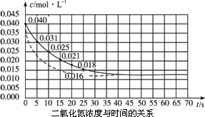 二氧化氮在加热条件下能够分解成一氧化氮和氧气.该反应进行到45秒时,达到平衡(NO2浓度约为0.01 25 mol·L-1).下图中的线表示二氧化氮分解反应在前25秒内的反应进程.