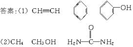 请写出六种你学过的有机化合物的结构简式,这些化合物燃烧后产生的CO2和H2O(g)的体积比符合如下比值(各写3种):(1)V(CO2)∶V〔H2O(g)〕=2的有___________、___________、___________.