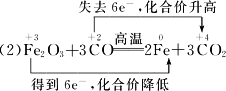 (2)写出赤铁矿被一氧化碳还原成铁的化学方程式,用双线桥标出电子的得失和化合价的升降:________.