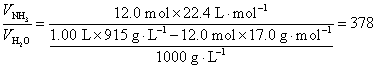 1.00 L该氨水中含水的质量为 1.00 L×915 g•L-1-12.0 mol×17.0 g•mol-1, 其体积为: