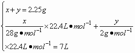 标准状况下氢气和一氧化碳的混合气体7 L,质量为2.25 g,求H2和CO的质量分数和体积分数.