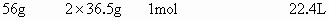 答案:18.25g#18.25克;0.25mol#0.25摩尔;5.6L#5.6升