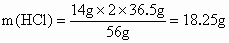 14gFe与足量稀盐酸混合充分反应,消耗多少克HCl?生成