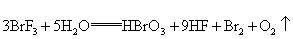 与水按物质的量之比3∶5发生反应,其产物为溴酸、氢氟酸、单质溴和氧气.