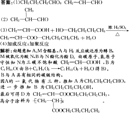 有一种广泛用于汽车、家电产品上的高分子涂料,是按如图所示流程生产的.流程图中M(C3H4O)和A都可以发生银镜反应;N和M的分子中碳原子数相等;A的烷基上一氯取代位置有三种.