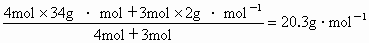 (2)原混合气体平均摩尔质量为: