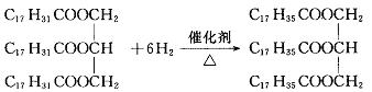 设与油脂A中的羧酸有相同碳原子数的饱和高级脂肪酸为 又由 n( 每摩A燃烧可生成 0.1 mol×(3n+3)+0.1 mol×(3n-5)=10.6 mol ∴ n=18 油脂A的结构简式为 油脂A发生氢化反应的化学方程式为: