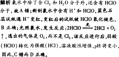 新制氯水可使蓝色石蕊试纸先变红后褪色 |