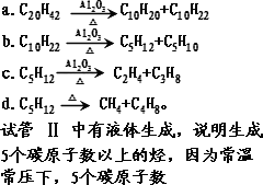 ijÑо¿ÐÔѧϰС×éÔÚʵÑéÊÒÖÐÄ£ÄâʯÓ͵Ĵ߻¯ÁÑ»¯£¬×°ÖÃÈçͼ£ºÊµÑé¹ý³ÌÖпɹ۲쵽ÉÕÆ¿¢ñÖйÌÌåʯÀ¯ÏÈÈÛ»¯£¬ÊԹܢòÖÐÓÐÉÙÁ¿ÒºÌåÄý½á£¬ÊԹܢóÖÐËáÐÔ¸ßÃÌËá¼ØÈÜÒºÍÊÉ«£¬ÊµÑéºóÎÅÊԹܢòÖÐÒºÌåÆøÎ¶£¬¾ßÓÐÆûÓÍµÄÆøÎ¶£®