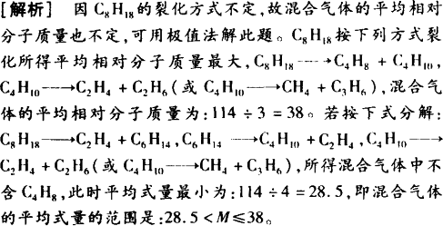 C8H18经多步裂化,最后完全转化为C4H8、C3H6、C2H4、C2H6、CH4五种气体混合物.该混合物的平均相对分子质量可能是 | |