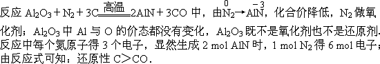 ÔÚµª»¯ÂÁµÄºÏ³É·´Ó¦ÖУ¬N2ÊÇ»¹Ô¼Á£¬Al2O3ÊÇÑõ»¯¼Á |