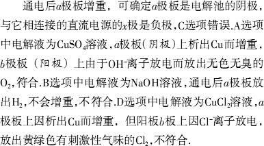 x、y分别是直流电源的两极,通电后发现a极板质量增加,b极板处有无色无臭气体放出,符合这一情况的是________.