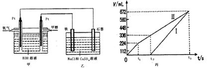 (2)ÀíÂÛÉÏÒÒÖÐÁ½¼«ËùµÃÆøÌåµÄÌå»ýËæÊ±¼ä±ä»¯µÄ¹ØÏµÈç±ûͼËùʾ(ÆøÌåÌå»ýÒÑ»»Ëã³É±ê×¼×´¿öϵÄÌå»ý)£¬Ð´³öÔÚt1ºó£¬Ê¯Ä«µç¼«Éϵĵ缫·´Ó¦Ê½________£¬Ô»ìºÏÈÜÒºÖÐNaClµÄÎïÖʵÄÁ¿Å¨¶ÈΪ________mol/L£¬CuSO4µÄÎïÖʵÄÁ¿Å¨¶ÈΪ________mol/L£®(¼ÙÉèÈÜÒºÌå»ý²»±ä)