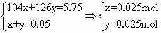 故据钠元素守恒n(NaOH)=(0.025+0.025×2)mol=0.075mol c(NaOH)= (2)由图可见7.10g溶质为 ∴n(NaOH)= c(NaOH)= |