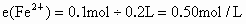 ① n(FeS)=8.8g÷88g/mol=0.10moln(HCl)=0.2L ×2.0mol/L=0.4mol由 共生成