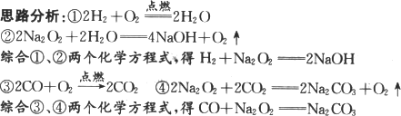 综合上述可知,在有氧气和点燃的条件下,H2、CO以及它们的混合物都能全部被Na2O2吸收,并且氧气不被吸收.将化学式C6H12O6和C12H22O11分别作H2、CO式转化,得“6CO·6H2”、“11CO·11H2·C”.则不能满足上述结果的是C12H22O11(“11CO·11H2·C”). |