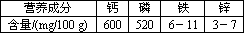 某婴儿配方奶粉部分营养成分的含量如下表所示: