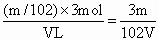 在V L Al2(SO4)3溶液中加入过量氨水,过滤得沉淀,然后在高温中灼烧沉淀,最后得白色固体m g,溶液中 | |
