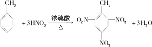 (2)取代反应:与浓硝酸、浓硫酸的混合液发生硝化反应. 甲苯可以和浓硝酸、浓硫酸的混合液反应生成2,4,6-三硝基甲苯. |