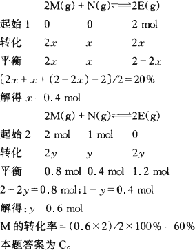 本题为恒温、恒容条件,开始时只充入2 mol E(g)与开始时只充入2 mol M(g)和1 mol N(g)为等效平衡状态,即达平衡时两者的平衡状态是各物质的物质的量是相同的. |