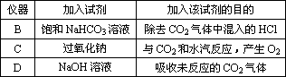 (3)2Na2O2+2CO2 (4)把E中的导管移出水面,关闭分液漏斗活塞,用拇指堵住试管口,取出试管,立即把带火星的木条伸入试管口内,木条复燃,证明试管中收集的气体是氧气 思路解析:过氧化钠作为供氧剂,是与水蒸气和二氧化碳反应生成氧气,本题需制取二氧化碳气体并检查生成的氧气.实验室中用碳酸钙与盐酸反应生成二氧化碳气体,但要除去混在二氧化碳中的氯化氢气体,可用饱和的NaHCO3溶液.然后二氧化碳气体与过氧化钠反应生成氧气,可收集并检验氧气,但需除去混在氧气中的二氧化碳气体,可用氢氧化钠溶液,氧气检验可用带火星的木条检验. |