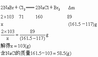 向含有NaCl和NaBr共161.5g的溶液中,通入足量氯气,充分反应后将溶液蒸干,称得剩余固体质量为117g.求原溶液中含NaCl、NaBr各多少克?(按NaBr、NaCl的顺序)