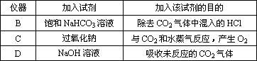 本题联系实际考查过氧化钠的性质——过氧化钠与二氧化碳反应,所以先制取二氧化碳,利用盐酸与碳酸钙反应,反应产生的气体中可能混有HCl,会与过氧化钠反应产生氧气,对实验造成干扰,必须先除去. |