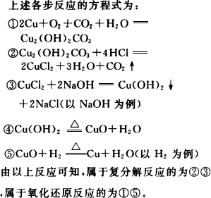 铜器久置于空气中会和空气中的水蒸气、CO2、O2作用产生“绿锈”.该“绿锈”俗称“铜绿”,又称“孔雀石”[化学式为Cu2(OH)2CO3],铜绿能跟酸反应生成铜盐及CO2、H2O.某同学利用下述系统反应实现了“铜→铜绿→……→铜”的转变.