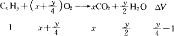 设混合烃的平均化学式为CxHy(105℃时水为气态),则有