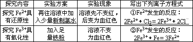 某化学兴趣小组利用实验室提供的下列试剂:铁粉、0.1 mol·L-1 FeCl3溶液、0.1 mol·L-1 FeCl2溶液、KSCN溶液、新制氯水,探究Fe2+、Fe3+的氧化性、还原性,并对实验结果加于应用.
