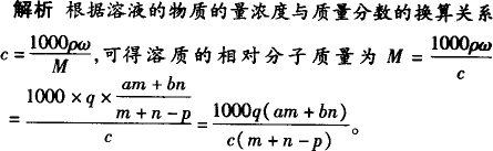 质量分数为a的某物质的溶液m g与质量分数为b的该物质的溶液n g混合后,蒸发掉p g水.得到的溶液每毫升质量为q g,物质的量浓度为c.则溶质的相对分子质量为( ). | |