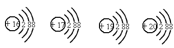 因 A原子的L层电子数与K、M层电子数之和相等,所以A的核电荷、数为2×8=16,A为硫元素.D原子的K、L层电子数之和等于电子总数的一半,所以D原子的核电荷数是(2+8)×2=20,D为钙元素.根据核电荷数依次增大,并都形成离子,排除氩原子和磷元素,B为氯元素,C为钾元素. |