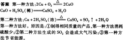 解析:在稀硫酸存在的条件下,Cu与O2反应后的生成物CuO迅速溶解在热的稀硫酸中生成CuSO4;第二种方法是在加热条件下铜与浓H2SO4反应,H2SO4会被还原为SO2,其利用率降低且生成的气体有毒. |