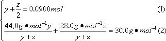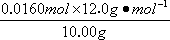 答案:(1)①AlN+NaOH+H2O ②61.5% (2)1.92% 解析:(1)由题目知AlN可与NaOH反应放出NH3,根据NH3的量可计算出AlN的质量,从而计算出样品中AlN的质量分数. (2)根据炭与O2高温充分反应测得气体密度计算出平均相对分子质量知为CO2和CO的混合气体,则可求出杂质炭的质量. x= AlN的质量分数: 混合气体的平均相对分子质量为1.34 g·L-1×22.4 L·mol-1=30.0 g·mol-1,是CO和CO2的混合气体,O2的物质的量为 设混合气体中CO2物质的量为y,CO物质的量为z. 由题意知: 解之y=0.002 00 mol z=0.014 0 mol 即:炭的物质的量为生成CO2和CO的物质的量之和为y+z=0.016 0 mol; 炭的质量分数 = |