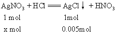 x=0.005mol n(AgNO3)=0.1mol/L×0.25L=0.025mol 与NaCl、NaBr反应的AgNO3物质的量为: 0.025mol-0.005mol=0.02mol 设原混合物中NaCl物质的量为y,NaBr物质的量为z。