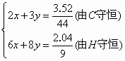 浓H2SO4增重2.04 g,即m(H2O)=2.04 g,由Na2O2增重2.24 g,可以求出m(CO2): 2CO2+2Na2O2 2×44 56 m(CO2) 2.24 g 所以m(CO2)=3.52 g 设:C2H6x mol,C3H8y mol,则 所以x= 所以x∶y=3∶2 |