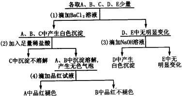 结论:A为Na2SO3溶液;B为Na2COa溶液;C为Na2SO4溶液;D为NaHCO3溶液; E为NaCl溶液。